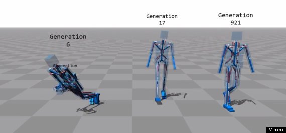 Basically a computer program that simulates a variety of different body shapes and species types that learn to walk through trial and error.